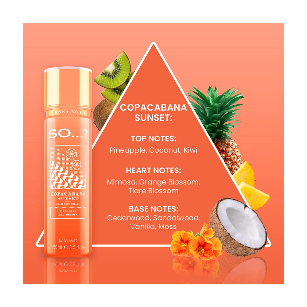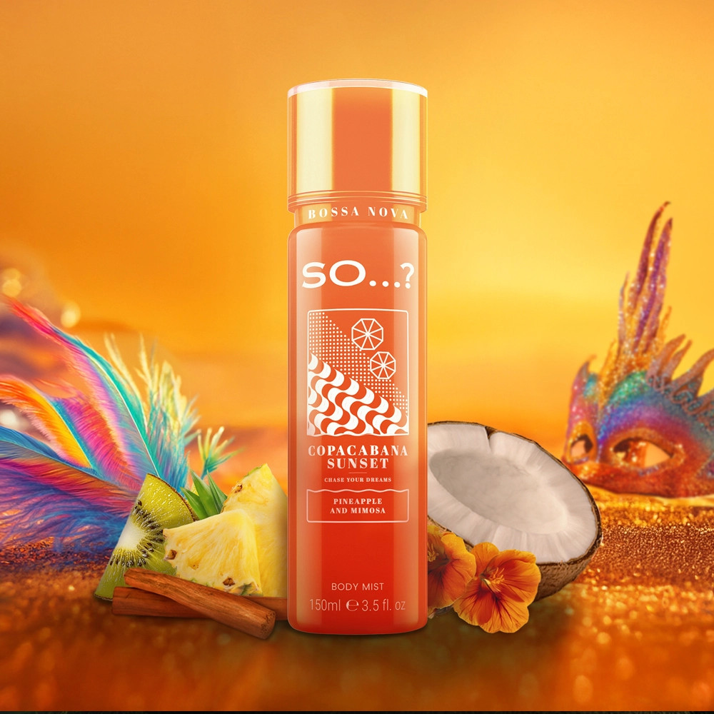 Merülj el a brazil ritmusok ihlette illatélményben a So…? Bossa Nova – Copacabana Sunset Body Mist segítségével. Ez a frissítő testpermet a nyári szabadság, a tánc és a naplementék hangulatát idézi meg, miközben könnyed illatfátyollal borítja be a bőröd.